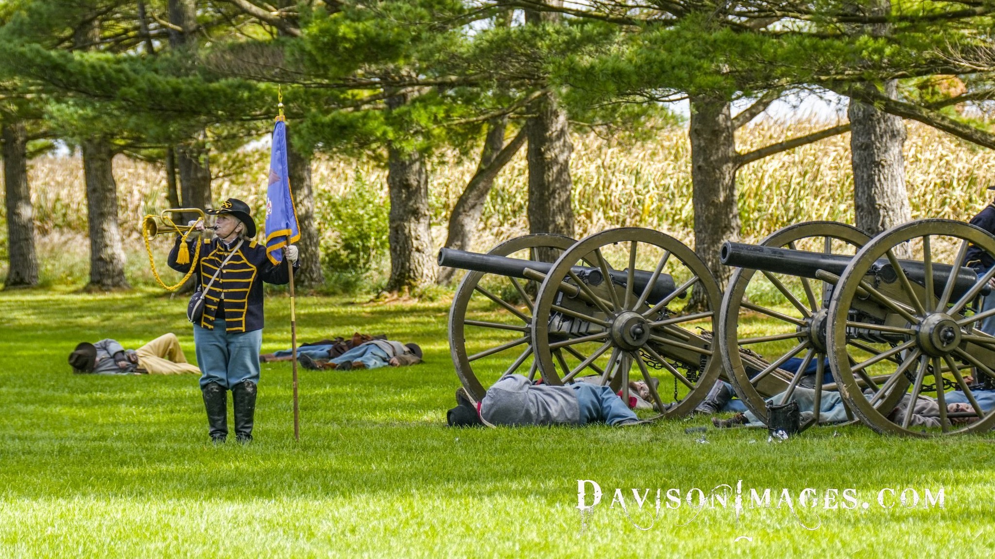 Union dismounts have destroyed the Confederate artillery - the bugler sounds Cease Fire and Resurrect! |