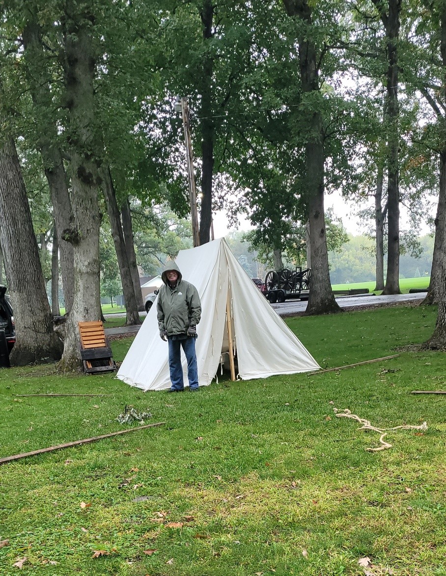 Setting up in the pouring rain so we could sleep dry! |